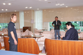 激闘から一夜明けて行われた会見には、当初、トーナメントの1回戦を勝ち抜いた5選手と山本“KID”徳郁が出席する予定だったが、山本KIDが38度の熱のため欠席。試合の数日前から熱を出し、昨夜の試合も風邪薬でコンディションを崩していただけに、さすがのKIDも疲れが一気に出てしまったようだ。また、高谷裕之も都合により欠席。結局、会見に出席したのはレミギウス・モリカビュチス、ホイラー・グレイシー、宮田和幸、所英男、そして前田日明スーパーバイザーだった。