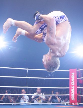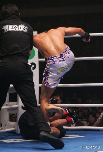 はい。顔にいこうと思っていたんだけど、「あ? 顔はなしだ」って思って、腹を踏んづけた。ボディはOKだったから。