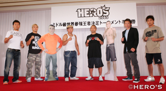 会見に出席したのは前田日明スーパーバイザーとトーナメントに出場する日本人6選手。