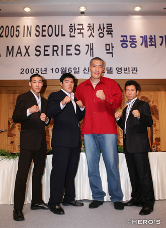 今、韓国は空前の格闘技ブームだ。何しろ9月23日に行なわれたチェ・ホンマンとボブ・サップの一戦は、ケーブルテレビ史上トップとなる16%という瞬間最高視聴率を弾き出したほど。さらに同日はK-1の韓国版サイトもアクセスが集中しすぎたためにサーバーがダウンし、ソウル市内の交通量が3分の1になってしまうなど、社会現象と言っていいほどの盛り上がりを見せていたのである。そんな追い風を受けて、11月5日にMAXとHERO'Sが合同興行として、韓国に初上陸を果たすこととなった。谷川プロデューサーが「1日に2つのビッグイベントが開催されるのは、世界的に見てもほとんど例を見ない」と自信を寄せる今大会は、日本のファンが羨みそうなほど豪華な内容となりそうだ。