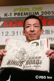 『ワールド・プロレスリング』のオープニングテーマ曲と共に会見場に姿を現した永田は、開口一番「今一番、勢いのある所選手に胸を借りるつもりで闘いたい」と謙虚に意気込みを述べた。会見に出席した谷川貞治K-1イベントプロデューサーも、「山本KID選手も言っていましたが、オリンピック選手は生物として違う。風呂なしの所選手と生物の違う銀メダリストが闘うということで非常に楽しみ。ただ、永田選手も総合のデビュー戦なので、お互いにチャレンジのある夢のある闘いになる」と、自身が組んだカードに自信満々の様子だ。