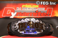 12・31『Dynamite!!』の前日会見の壇上には、『HERO'S』のミドル級世界最強王者決定トーナメントのベルトが飾られていた。会見が始まると、最初に山本“KID”徳郁と須藤元気の名が呼び上げられる。照明を受けて銀色に光る『HERO'S』ミドル級最強のベルトを挟んで、KIDと須藤が舞台中央に歩み寄る。舞台の右側からやってきたKIDは一足早く中央にたどり着き、そしてベルトに手を伸ばす。続けて写真撮影が行なわれたが、今度は須藤が興味深そうにベルトに触れた。そして、二人は握手をすることもなく席に着いた。