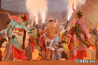 過去最大規模&人数で“和”をテーマに演出された、大晦日『Dynamite!!』での華やかな入場シーン。須藤元気の真骨頂だ
