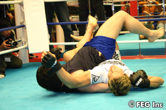 宮田はスパーリングで、プロレス技のグラウンドコブラまで披露した。「レスリングはここからフォールに繋げるんですけど、総合で極まれば100%タップしますよ」(宮田)