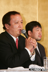 会見の冒頭では、桜庭が参戦するに至った経緯を谷川FEG代表が説明