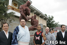 やっぱりここでも目立ったのは曙。中国は初めてという曙だが、歩くだけで人が群がっていきたちまち人気者に。大相撲は中国で巡業をしたこともあり、認知度は高いのだろう曙は足を負傷したため今回は小学生と相撲で対決することになっているが、出発前には「太極拳は腰にいい。ぜひ、やってみたいね」と語っており、中国武術を吸収する予定だという。減量に成功し、13年ぶりに200kgまで落ちたこともあり、体調は思ったよりもよさそうだ。