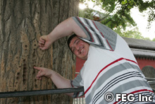アランは、地元の腕相撲大会優勝者と3番勝負。もちろん圧勝した