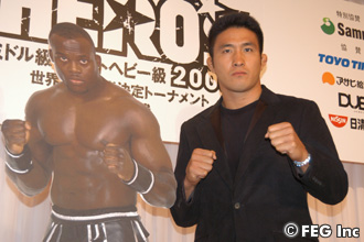 そして、その期待を裏切らない、豪華な夢のカードが決定。なんとライトヘビー級準決勝第一試合で、桜庭和志VS秋山勲成がいきなり実現することになったのだ。桜庭は8・5HERO'S有明大会で行われたライトヘビー級開幕戦(準々決勝戦)のダメージが心配されていたが、「CT、MRIで異常なし。本人も『ぜひ出たい』と言ってくれました」と、谷川FEG代表が出場決定までの経緯を説明。桜庭と話し合いの結果、出場が決まったことを明かした。ファンとしてもこれ以上ない、最高の朗報になったはずだ。