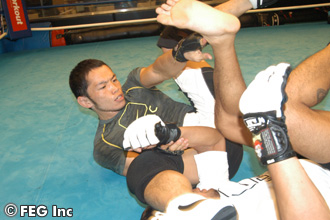 宇野はスパーリングで、三角絞め、スピニングチョークを極めていく。調子は良さそうだ