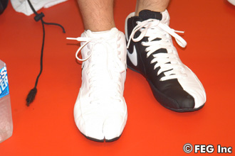 今日のスパーでは、つま先が足袋のようになっているナイキの特製シューズを履いて行なった