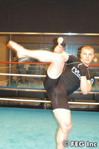 これを聞いた秋山は、「総合は闘ってみないとどうなるか分かりませんけど、柔道でも勝てる? それはないでしょうね」と明らかに不満顔。「桜庭選手が出なくなって気持ちを切り替えるのが大変でしたけど、今は大丈夫です」と話していた秋山だが、山田武士トレーナーがすでにスミルノヴァスの練習を視察済み。「遠いところから打ってくるし、ちゃんと手首を返している。できることならば、打撃で倒したいですけど、振り回してきそうですね」と山田トレーナーは分析する。すでに秋山は、準決勝で当たるスミルノヴァスのことしか頭にないようだ。