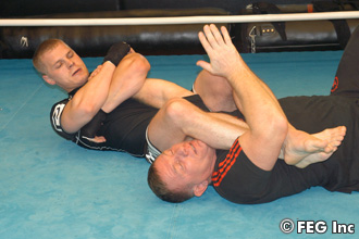 公開スパーでは、この腕十字だけではなくスリーパー、アキレス腱固めと多彩な技を披露した