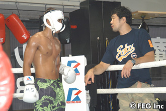 スパーリング中、金子にアドバイスを送る桜庭
