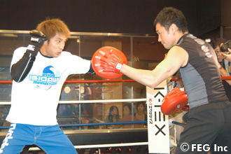 一方の金子は、シルバーウルフで公開練習を行った。魔裟斗と言葉を交わした金子は、「あとは本番までリラックスしろと言われています。時間があるので、試合のイメージトレーニングをしていますね」と好調ぶりをアピール。魔裟斗からアドバイスをしてもらったようだが、「内容は言えません(苦笑)。魔裟斗選手は尊敬するファイターなので、うまく出せればいいんですけどね」と、具体的なことはシークレットとなった。