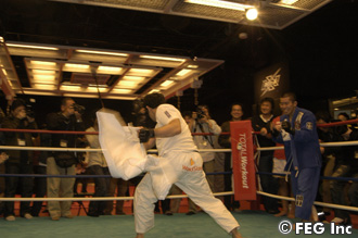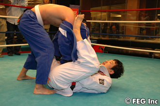 柔術衣をブン回したり、相手に巻き付けたりとやりたい放題! 果たして本番ではど〜なる?