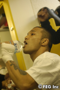 「亀田(興毅)の試合? ああ、テレビをつけたら、もうベルトを巻いていた。でも、判定だったって聞いた。だから別に…。やっぱりKOじゃないと面白くない。俺? もちろん、KOか一本で倒しますよ」
