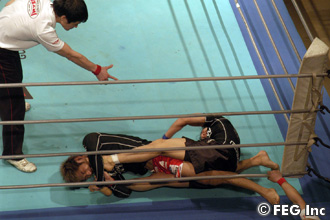 勝村は、川名からマウントを奪う。すぐに腕十字へ移行。三角絞めを極めかけると、川名が宮川とタッチした。ここで所が登場し、アンクルホールドを極めかける。ここで川名とタッチ。最後も所が腕十字を極めかけるが、時間切れ引き分け。結局、所&勝村は、相手のタッチワークのうまさに逃げられてしまった。