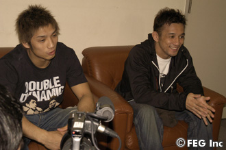 勝利を逃した勝村は、「あまり動けませんでしたね。僕のケガもあり、練習があまりできなかったことが響きました。相手とのキャリアの差を考えると、極めなければいけなかったんですけど」と反省の弁。所は、この試合の前に渡米してバレットヨシダと一緒に練習を積んできただけに、「それを活かせなかったので悔しいですね」と、こちらも反省しきり。「活かしてほしかったんだけどね」と勝村が突っ込みを入れて、所が苦笑いをする場面もあった。
