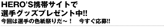 『OLYMPIA HERO'S 2007 開幕戦 ~名古屋初上陸~』スペシャルページでは、恒例の選手サイン入りグッズプレゼントを実施中! 今年最初のHERO'S開催を記念して、今回はあの人気選手から初参戦のあの選手まで、出場選手のサイン色紙が集結! 応援する選手のお宝色紙をGETしちゃおう!