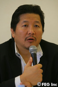 会見では、6月に開催予定のHERO'Sアメリカ大会の話題に。その全貌はいまだベールに包まれているが、谷川FEG代表は手応えを感じているようで、「ダナ・ホワイト(UFC代表)が腰を抜かすようなことになるでしょう」と自信満々にコメント。出場選手に関しては未発表ながら、「メルヴィン・マヌーフ選手やマイティ・モー選手なんかは、アメリカで話題になりそうですね」と、前日に活躍した二人の出場も十分に可能性はあることを示唆。日本人だと、UFCへの出場経験のある宇野薫、アメリカでも大人気の桜庭和志にも参戦の期待が高まるが、谷川プロデューサーは慎重な姿勢。最終調整は、これから行われるようだ。