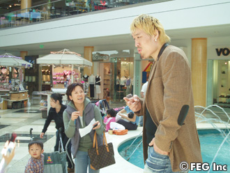 お腹も落ち着いたところで、今度は若者が集まるショッピングスポット『コリアンタウン・ガレリア』へ。ここはいわゆる東京でいえば、『109』みたいなもの。平日だったため、お客さんの数は少なめだが、それでもホンマンの登場でその場にいた主婦&チビッコたちがプチパニック状態に。