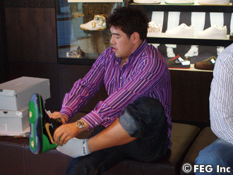 ナイキショップにも立ち寄ったホンマン&ミンス。「これもカッコイイな~」と次から次へと試着するミンス。ん~、靴よりもシャツの柄がステキ過ぎ!!