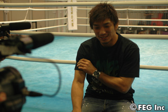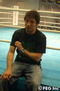 対戦相手のブラッド・ピケットに関しては、「『YouTube』で見た程度です(笑)」と、情報が少ない状況を告白した所。かつてピケットと対戦したことのある阿部裕幸から「『打撃もあるけど、体力もあるよ』って話を聞きました」と助言をもらうと、「自分も粘りで勝負をしようと思っていたのでイヤですね。根比べ? そうなる気がします」と長期戦を覚悟。「相手はブラピなら、ボクは千葉真一を目指します!」と、意味は分からないが、とにかくすごい自信を覗かせた。