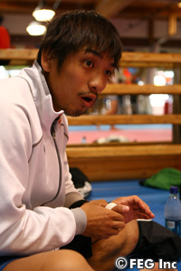 ちなみに、この日の練習では"ニセ・ホンマン"のニックネームで親しまれる奥出が、マヌーフに腕十字で一本をとられ、スタンドでボコボコに殴られる悲惨な姿に。「あ、あの人には、僕のテクニックはまったく通じませんでした。タックルをとるとか、テイクダウンをするとか、それ以前の問題ですね」と呻いた。所も、意外とマヌーフは寝技がうまいことに驚いたようだ。