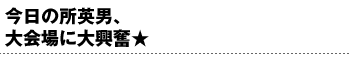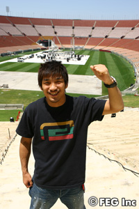 連日、オフィシャルスタッフが追いかけている所英男は、この日、ついに会場となる『ロサンゼルス・メモリアル・コロシアム』を訪れた。「で、でかいっすね…」とビビリまくりの所さんは、大きな会場を見たことで緊張感が高まってしまったかも…。前日は、なぜかアメリカの求人広告を手にして大興奮。"闘うフリーター"は、アメリカを本拠地にする計画なのか。それとも…。と、ともかく所が興奮していることだけは間違いない。■