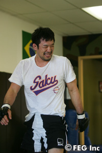 スパーリングでは高橋の肩固めでタップする不安材料もあったが、「あれは、たまに取らせてあげないと渉がイジケるからです。本当は技に入らせてあげて、逃げようとしたら体制を立て直されて技が入っちゃいました」と桜庭は、それでも余裕のニコニコ顔。何も問題はないみたいだ。