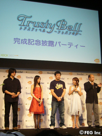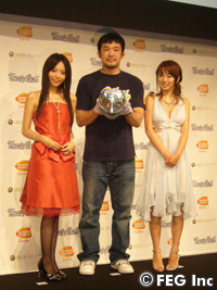 この日のパーティーは、6月14日(木)に発売のXbox360専用のオリジナルRPG『トラスティベル~ショパンの夢~』の完成記念として行われたもの。では、そのパーティーになぜ桜庭が……? 桜庭は、3月のHERO'Sの公開計量ではXbox360本体を持って計量に臨んだり、『Dynamite!! USA』ではアメリカにXbox360を持っていくほどのハードXboxユーザー。そのことから、今回のパーティーのサプライズゲストとなったのだ。