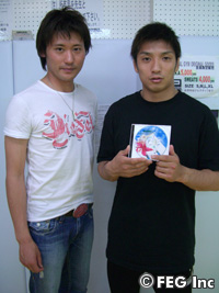 もともと所選手は「試合前日までは何も考えないようにしていますが、当日になると急にドキドキしてすごく緊張する」タイプだそうで、このたびこのハートショットでオリジナルのやすらぎサウンド作りに挑戦。やはり指先から脈波を採取してからものの5分で音源ができあがるのが不思議なようで、「え、もうできたんですか!?」と驚きの表情を浮かべる。このハートショットの普及に尽力する藤本武男氏(アプローズ合同会社代表)によると、「この音楽を聴くと、通常で4〜5分、人によっては2分くらいでα波が発生します」というほど即効性があるということで、さっそく所も視聴。「う〜ん、なんとなく癒されてくるような気がしますねえ……」と、もともとが癒し系(?)なだけあって、劇的な効果は感じていないか? 「いや〜、でもこれはいいんじゃないでしょうか。クルマの中や試合当日の控え室で流したいと思います!」と喜んだ。だが、藤本氏から野球界やゴルフ界のハートショット愛用者の名前と愛用後の好成績を教えられると、「うっ、じゃあ、ボ、ボクももう負けられないじゃないですか……!」と困惑気味に……。そんな心の動揺が激しい所だけに、やはりこのハートショットは強い味方となり、出場が予定されている『OLYMPIA HERO'S 2007 〜ミドル級世界王者決定トーナメント開幕戦〜』(7月16日、横浜アリーナ)のリングでその効果が発揮されるはず!? 集中力アップ&発想が豊かになったニュー所英男にこうご期待!■
