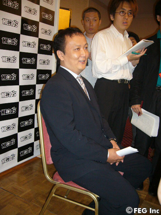 記者会見に出席したのは谷川貞治FEG代表。田村の参戦について「HERO'Sに新しい流れができると思います」とコメント