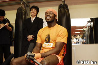 公開練習に先立ち行われた囲み会見でアッカは「コンディションは、いいあんばいですねぇ〜。練習はほぼ毎日していますよ。1日2回に分けて、3〜4時間やっています。『Dynamite!! USA』が終わってすぐに『次(7・16HERO’S)、出る可能性あるよ』って言われていたので、アメリカから帰ってすぐに練習を再開しました」と現在の練習状況を報告した。