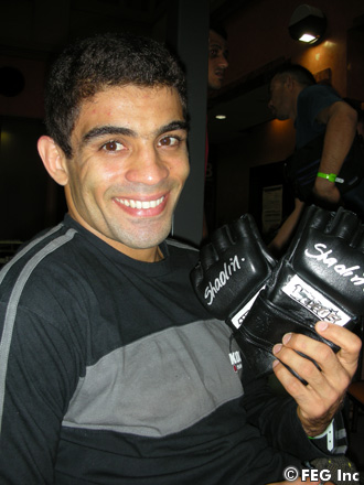 ハニカミスマイル(?)も素敵な柔術王子! サインは“Shaolin”だ!!