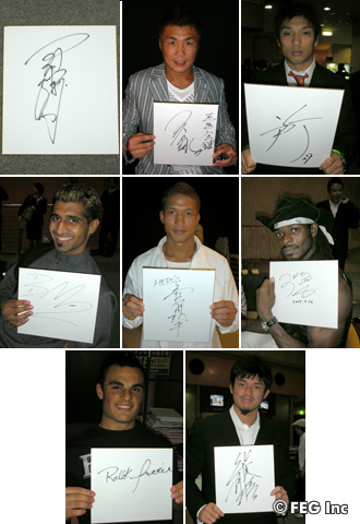 それからそれから、今大会直前に電撃参戦が発表された田村潔司選手、“金ちゃん”こと金泰泳選手、リベンジ戦で気合が入りまくっている所&マンバのご両人、さらに宮田選手、アッカ選手と人気どころのサイン色紙もど~んと大放出!! ヒクソンの甥っ子、ハレック・グレイシー選手からも記念サインをGET! さぁ、あなたは誰のサイングッズに応募する!? 今すぐHERO'S携帯サイトにアクセスだぁ~☆■