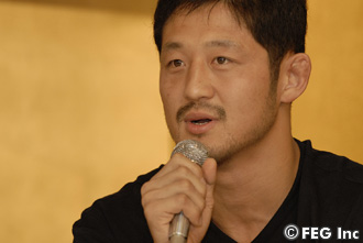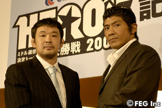 会見には、『OLYMPIA HERO'S 2007 ~ミドル級世界王者決定トーナメント決勝戦~』(9月17日/横浜アリーナ)への出場が決定した桜庭和志、柴田勝頼、ユン・ドンシク、そして前田日明HERO'Sスーパーバイザー、谷川貞治FEG代表が出席した。