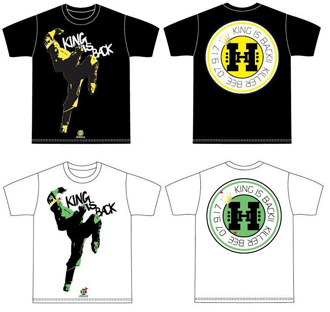 遂に遂に、みんなのKINGが帰って来るZE! ってことで、久々にHERO'Sリングで大暴れする予感MAXの山本“KID”徳郁ニューグッズが到着だメ〜ン!!(by練マザファッカーさん)その名も「HARD HIT"KING IS BACK"Tシャツ」!! これ来てみんなでKIDコールするんだメ〜ン!!