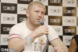 そして、昨日、HERO'S初参戦でアリスター・オーフレイムからTKO勝ちを収めたハリトーノフも仰天発言。「昨日勝ったことには満足しています。しかし、この勝利は王者への道の第一歩。それには、この世界のランキング1位の男に勝たなければいけない。ヒョードル。彼を倒すために全力を尽くす!」と、PRIDEヘビー級王者・エメリヤーエンコ・ヒョードルとの試合を熱望したのだ。