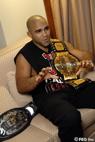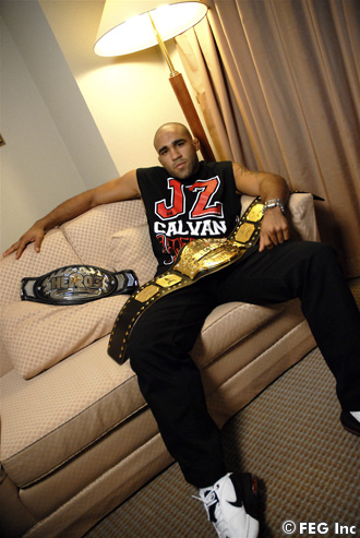 興味のある選手として、PRIDEライト級王者の五味隆典の名前を挙げたカルバン。HERO'Sミドル級王者の今後に注目だ!!