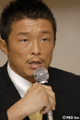 「昨年末の試合で、多大な迷惑をかけたことに対して関係各位、皆様方、そしてテレビ局の皆様方、スポンサーの皆様方、ファンの皆様方、最後に桜庭選手。本当に申し訳ありませんでした。自分としましてもなにをどうとかというわけではなく、精一杯リングの上で表現することがいま第一の目標として考えております。それが皆さんになにか伝わればと思い、がんばってリングの上に立って表現したいと思います」