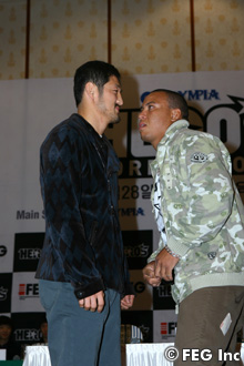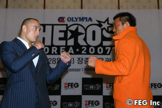 そして今大会の主催者であるFEG KOREAのCEOであるチョン・ヨンス氏も「韓国でのHERO'Sは今回で二回目ですが、我々が主催するイベントとしては初となる。今大会も前回と同じく韓国のファイターと世界のトップファイターの対決という図式のマッチメイクが多いが、それは意図的に作ったものではなくそれだけ韓国人ファイターのレベルが上がった証拠。すでに韓国ではK-1が多数のファンを確保しているが、今後HERO'Sも必ずブレイクすることになるでしょう」と韓国人ファイターの目覚ましい成長と韓国現地でのMMA人気の盛り上がりに目を細めた。